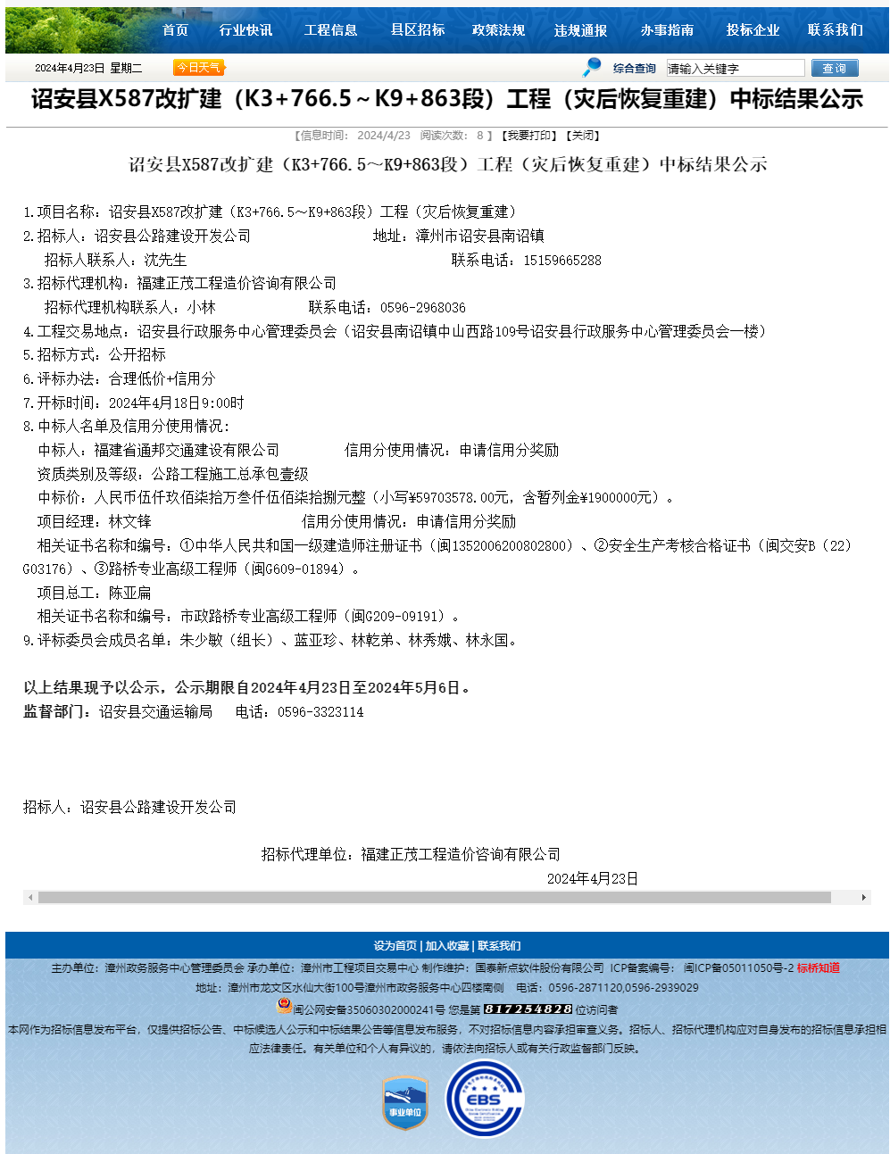 詔安縣X587改擴(kuò)建(K3+766.5~K9+863段)工程(災(zāi)后恢復(fù)重建)項(xiàng)目